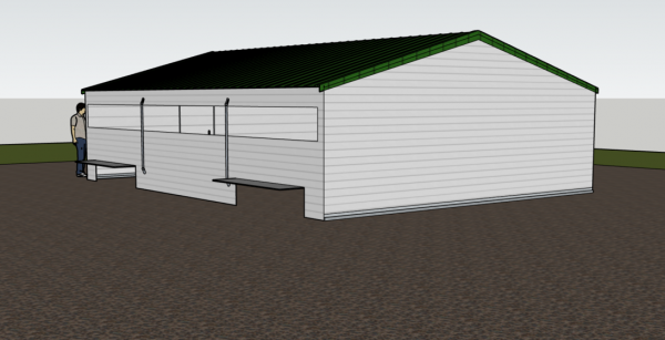 Dimensions et composition d’un bâtiment avicole de 6,6 x 8,8 m pour une surface totale de 60 m²