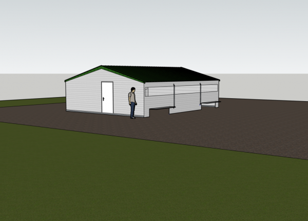 - Hauteur des poteaux de support : 2 m, hauteur intérieure sous faitage : 3 m